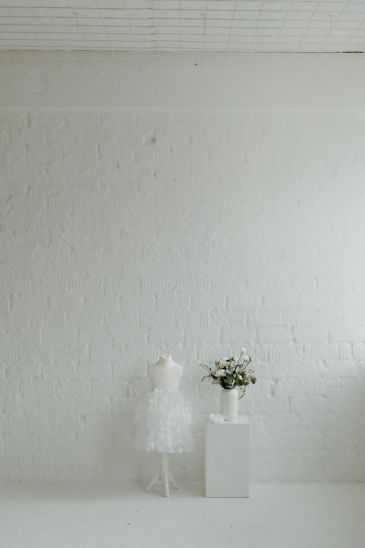 verziert mit Gänseblümchen-Stickereien und entzückenden großen Schleifen an den Schultern.